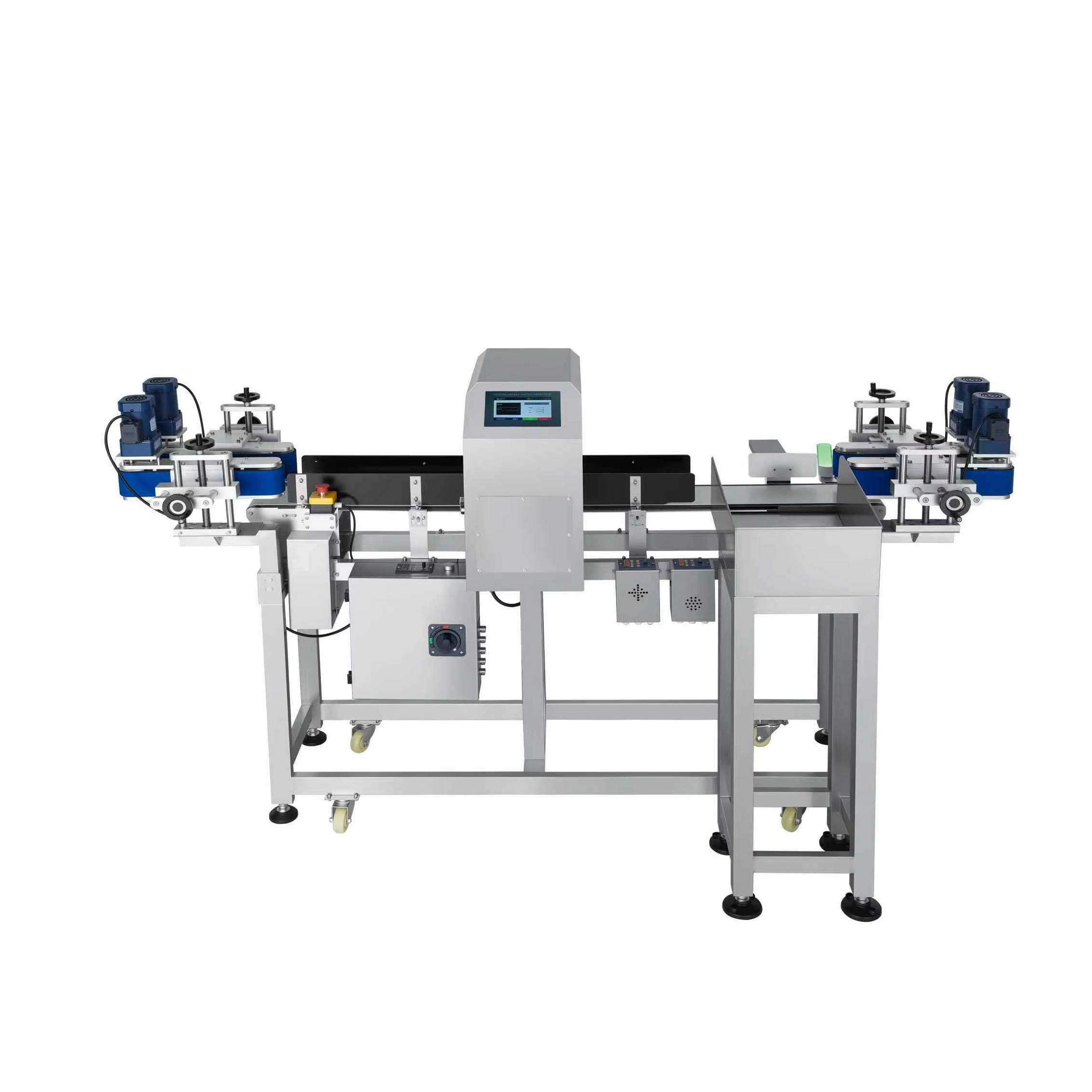 Ce détecteur de métaux convient aux produits en bouteille et en conserve dans les secteurs de l'alimentation, des boissons, des produits de santé et des soins personnels. Il peut détecter les contaminants métalliques, tels que les métaux ferreux, le fer, l'acier inoxydable et le cuivre. Le mécanisme de serrage est conçu pour empêcher le basculement et assurer un transport fluide et stable des bouteilles et des canettes.