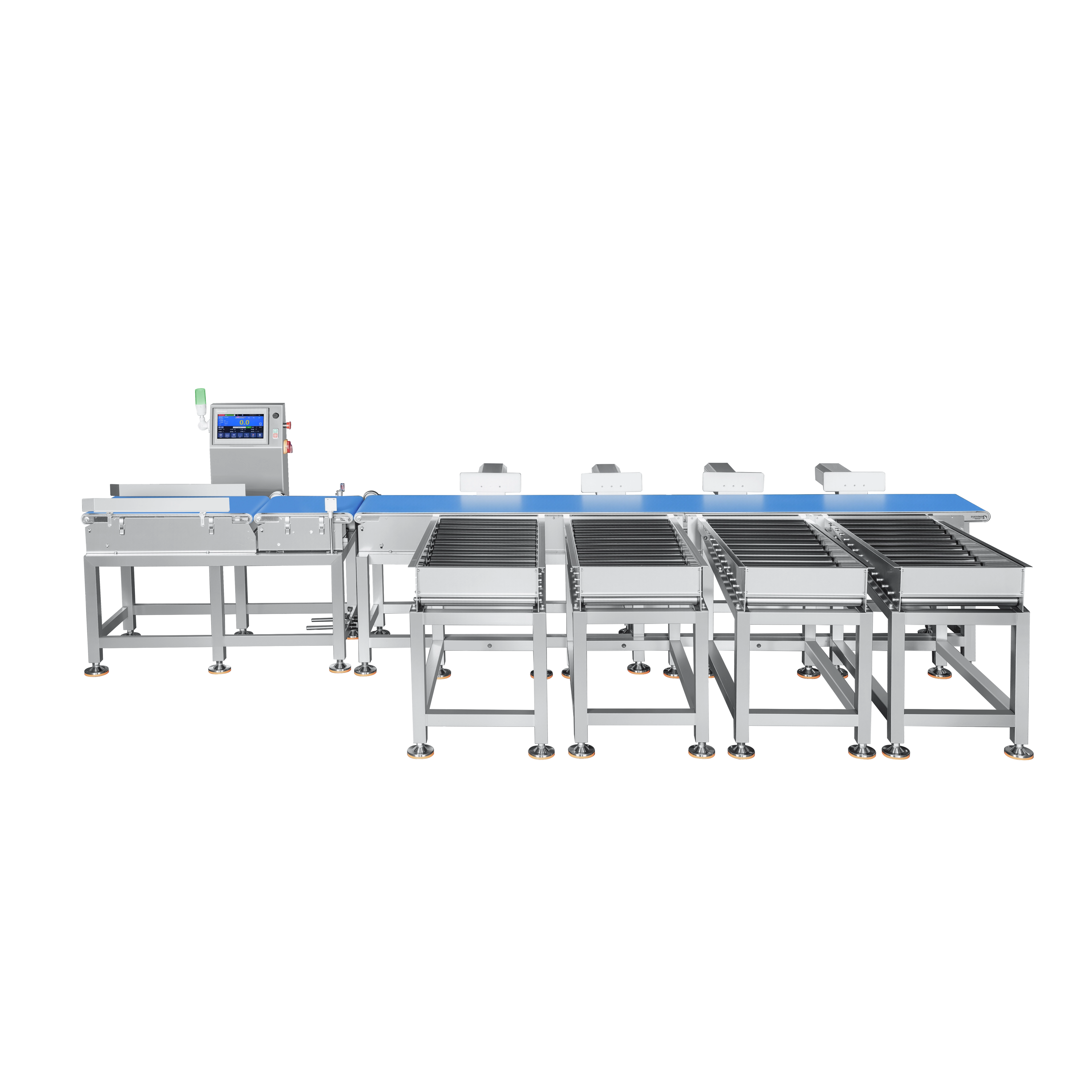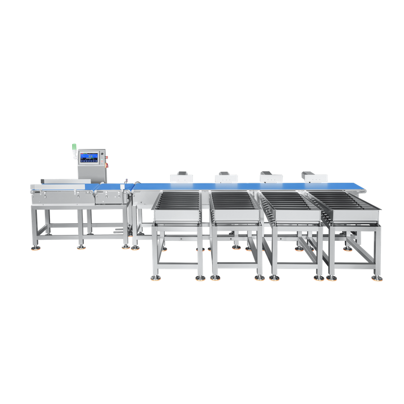 Les machines de tri de poids à plusieurs niveaux classent automatiquement les produits en différentes lignes de production en fonction de plages de poids. L'affichage en temps réel de la quantité produite, du numéro de lot, du poids total, du poids valide et des données de poids rejeté remplace efficacement le pesage et le tri manuels. Et il convient au tri pondéral des produits aquatiques, de la pêche, de la volaille, des noix, des fruits et légumes, de la pâtisserie et d'autres produits.